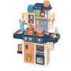 Bucatarie Dubla Completa Multifunctionala Karemi, Chiuveta cu Circuit de Apa, Masina de Spalat Vase, Cuptor, Oala sub Presiune, Ustensile, Produse, Legume, Lumini si Sunete, 42 piese, Albastru multicolor
