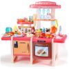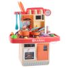 Bucatarie Dubla Completa Multifunctionala Karemi, Chiuveta cu Circuit de Apa, Masina de Spalat Vase, Cuptor, Oala sub Presiune, Ustensile, Produse, Legume, Lumini si Sunete, 42 piese, Roz / Portocaliu