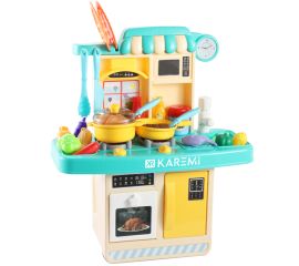 Bucatarie pentru copii Karemi, ustensile si accesorii, 23 piese, 34 x 16 x 39 cm, galben cu blat verde