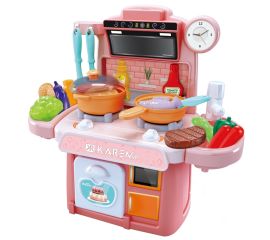 Bucatarie pentru copii Karemi, cu accesorii incluse, 26 piese, 33 x 15 x 30 cm, roz