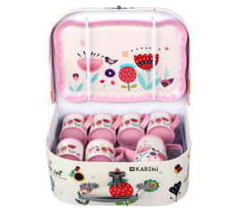 Set ceai Karemi, pentru copii, cu ceainic, cani, platou, Alb/ Roz, K01B-10023