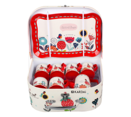 Set ceai Karemi, pentru copii, cu ceainic, cani, platou, Alb / Rosu