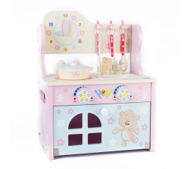 Mini bucatarie de jucarie Karemi, din lemn, cu accesorii, K01B-40068 Jucaria de rol perfecta pentru orice copil care isi doreste sa isi ajute parintii la treburile casnice, in special cele din bucatarie. O bucatarie completa in miniatura, din lemn, frumos vopsita si cu accesorii...