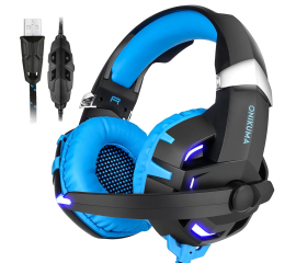 Casti Gaming HunterSpider V1 Pro, Super Deep Bass, 7 Culori Lumina LED, albastru