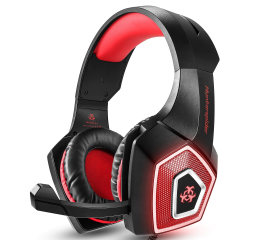 Casti Gaming HunterSpider V1 Pro, Super Deep Bass, 7 Culori Lumina LED, rosu