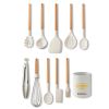 Set 10 ustensile de bucatarie Karemi, din silicon termorezistent si maner lemn, alb