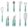 Set 9 ustensile de bucatarie Karemi, din otel inoxidabil si maner din silicon termorezistent, nuanta mint