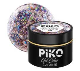 Gel color cu paiete Piko, 5g, 08 Gel color imbogatit cu paiete multicolore ideale pentru a da manichiurii un aspect magic. Se poate aplica peste orice baza de oja semipermanenta,gel de constructie sau pentru a da un aspect special culorilor de oja semipermanenta. Mod de utilizare:...