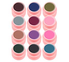 Set gel color Canni, 12 buc, Elegant Gelurile color Canni cuceresc prin nuantele versatile si calitate. Au o putere mare de acoperire si pot fi folosite in colorarea intregii unghii sau pentru pictura, in trasarea liniilor fine sau pete controlate. Setul Elegant curprinde 12...