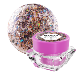Gel color UV cu paiete Piko, 5g, 10 Gel color imbogatit cu paiete multicolore ideale pentru a da manichiurii un aspect magic. Se poate aplica peste orice baza de oja semipermanenta,gel de constructie sau pentru a da un aspect special culorilor de oja semipermanenta. Mod de...