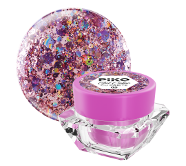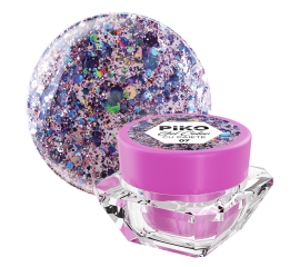 Gel color UV cu paiete Piko, 5g, 07 Gel color imbogatit cu paiete multicolore ideale pentru a da manichiurii un aspect magic. Se poate aplica peste orice baza de oja semipermanenta,gel de constructie sau pentru a da un aspect special culorilor de oja semipermanenta. Mod de...