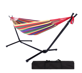 Hamac Karemi, pentru doua persoane, cu suport metalic si geanta de transport, multicolor
