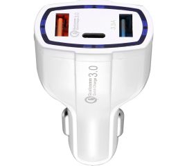 Incarcator auto cu incarcare rapida, QC 3.0, 2 porturi USB si tip C, 20W, alb