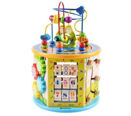 Jucarie educativa multifunctionala Karemi pentru copii, din lemn, cu 8 moduri, multicolor