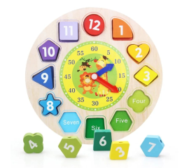 Ceas din lemn Karemi, joc educativ, cu piese multicolore Ceasul de lemn Karemi este un mod unic de a invata timpul. Un puzzle cu ceas din lemn colorat, cu 12 forme din lemn care se potrivesc in partile alocate. Realizat special pentru a-i ajuta pe copii sa stapaneasca conceptul de...
