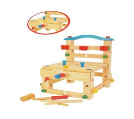 Jucarie educativa Karemi, scaun de asamblat din lemn, diferite scule si forme geometrice
