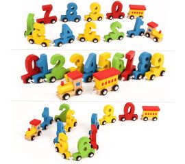 Tren din lemn cu vagoane cifre de la 0 la 9 Karemi, multicolora