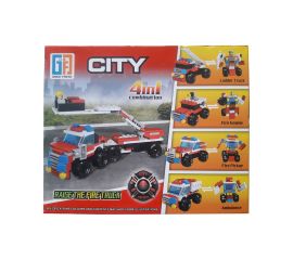 Joc de asamblare Karemi, City Fire Rescue, 4 in 1, masini pompieri care se transforma in roboti