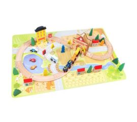 Circuit din lemn trenulet cu accesorii si plansa Karemi, 54 de piese