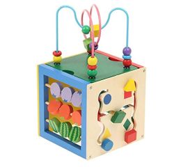 Cub activitati educationale Karemi din lemn, centru multifunctional, 5 in 1, multicolor