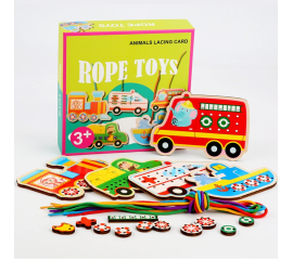 Puzzle educativ cu snururi Karemi, model mijloace transport, multicolor