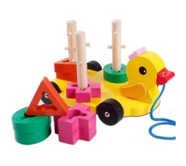 Jucarie din lemn Karemi, figurina unei ratuste, forme geometrice, educativa, multicolora