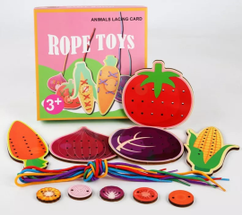Puzzle educativ cu snururi Karemi, model legume, multicolor