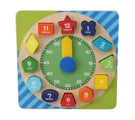 Ceas educativ din lemn Karemi pentru copii, piese multicolore Ceasul de lemn Karemi este un mod unic de a invata timpul. Un puzzle cu ceas din lemn colorat, cu 12 forme din lemn care se potrivesc in partile alocate. Realizat special pentru a-i ajuta pe copii sa stapaneasca conceptul...