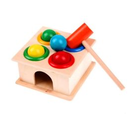 Cutia permanentei Montessori, cutie din lemn cu bile si ciocan – jucarie eductiva si senzoriala din lemn Dupa ce bila a fost introdusa, aceasta aluneca pe planul inclinat si iese apoi prin orificiu. Dimensiuni casuta : 11 cm x 11 cm x 6 cm D Diametru bila : 2.5 cm Ciocan: 13 cm lungime...