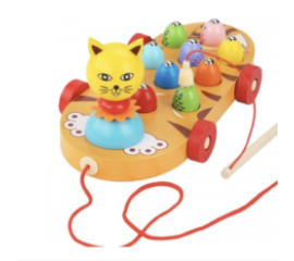 Jucarie de tras si pescuit Karemi din lemn – Pisica si pestisori