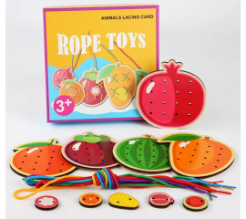 Puzzle educativ cu snururi Karemi, model fructe, multicolor