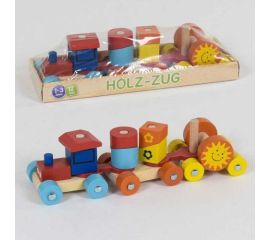Trenulet din lemn cu 2 vagoane Karemi, forme geometrice, multicolore