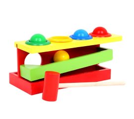 Jucarie cu ciocan si bile din lemn Kremi, multicolora