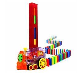 Locomotiva de creeatie DominoKaremi, + 100 piese, +3 ani, multicolora Toate piesele sunt netede fara asperitati, nu vor rani mainile copiilor in timp ce joaca. Trenuletul electric emite sunete si lumini, are un design placut si elibereaza piesele domino unul cate unul. Culorile...