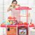 Bucatarie Dubla Completa Multifunctionala Karemi, Chiuveta cu Circuit de Apa, Masina de Spalat Vase, Cuptor, Oala sub Presiune, Ustensile, Produse, Legume, Lumini si Sunete, 42 piese, Roz / Portocaliu