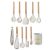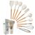 Set 10 ustensile de bucatarie Karemi, din silicon termorezistent si maner lemn, alb