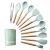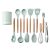 Set 12 ustensile de bucatarie Karemi, din silicon termorezistent si maner lemn, verde pal