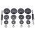 O gama de 12 placi de fonta standard de 1" sunt furnizate in set: 4 x 0,5 kg, 4 x 1,25 kg si 4 x 2,5 kg.