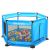 Tarc de joaca de copii multifunctional Karemi, plasa rezistenta, 50 bile, covor, albastru