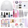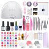 Kit unghii gel Perfect, Lila Rossa NailSchool, cu lampa UV led SunOne, 36 geluri color, degresant, primer, top, baza, decoratiuni, tipsuri, accesorii