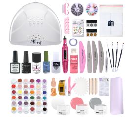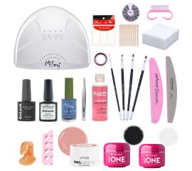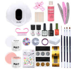 Kit unghii gel  Essential, Piko, cu lampa UV/ LED, 90 W, degresant, top, baza, pensule, decoratiuni Kitul  cuprinde toate produsele necesare pentru o manichiura cu gel UV. Produsele sunt foarte usor de folosit si...