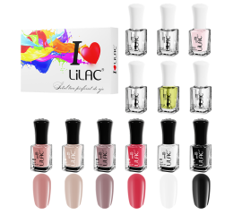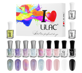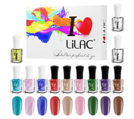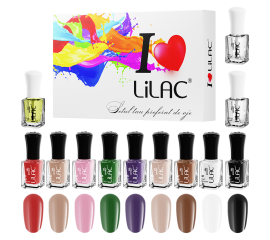 Set lac de unghii Lilac, Aqua, 9 culori, base coat, top coat, ulei de cuticule Setul de lac de unghii Lilac, Aqua cuprinde 9 culori superbe pentru o manichiura perfecta, base coat, top coat si ulei de cuticule. Lacul de unghii Lilac are o textura matasoasa, cu...
