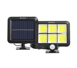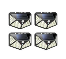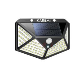 Lampa cu incarcare solara, KAREMI, 100 x LED, cu senzori de amurg, miscare si lumina, 3 trepte de iluminare Lampa solara de perete cu senzor de lumina si miscare   foloseste razele soarelui pentru a se incarca si a fi functionabila pe tot parcursul noptii. Lampile led contin 2...