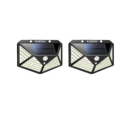 Set 2 lampi cu incarcare solara, KAREMI, 2 x 100 LED, cu senzori de amurg, miscare si lumina, 3 trepte de iluminare Lampi solare de perete cu senzor de lumina si miscare foloseste razele soarelui pentru a se incarca si a fi functionabila pe tot parcursul noptii. Lampile led contin...