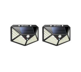 Set 2 lampi cu incarcare solara, Karemi, 100 x LED, cu senzori de amurg, miscare si lumina, 3 trepte de iluminare Lampi solare de perete cu senzor de lumina si miscare 100 LED-uri foloseste razele soarelui pentru a se incarca si a fi functionabila pe tot parcursul noptii....