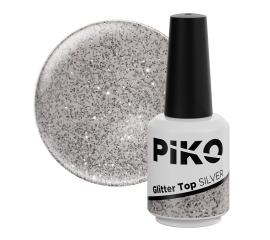 Top color Piko, Glitter Top, Silver Piko Glitter Top – este un top coat fara degresare,special creat pentru sigilarea manichiurii cu oja semipermanenta,gel color,gel de constructie sau acryl. Bogat in particule fine de sclipici,ofera manichiurii un aspect elegant si o protejeaza de...