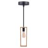 Lustra suspendata moderna din lemn natural, structura metalica, negru mat, 1 x E27