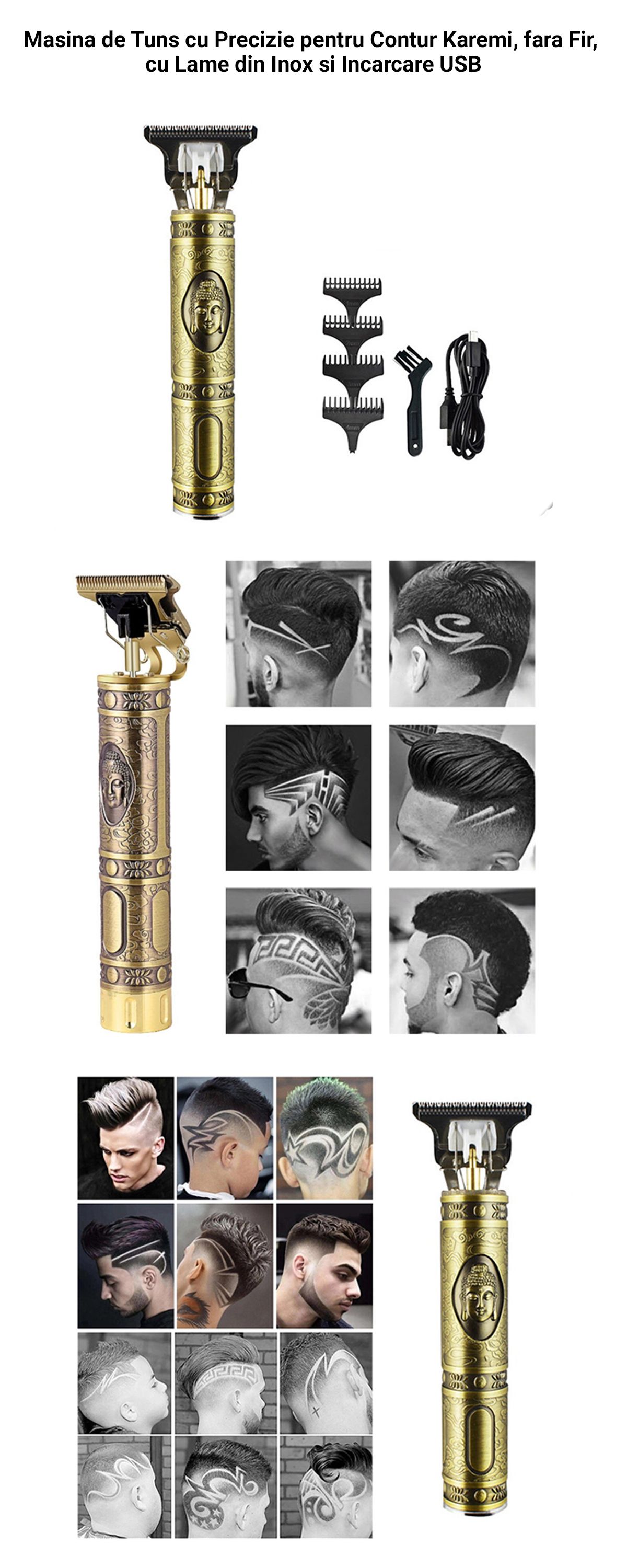 Masina de tuns Karemi, cu precizie pentru contur, fara fir, cu lame din inox si incarcare USB