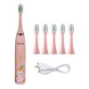 Periuta de dinti electrica Lila Care, pentru copii, rezistent la apa, cu incarcare USB, 6 capete inlocuibile, 4 moduri de vibratii, roz
