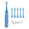 Periuta de dinti electrica Lila Care, pentru copii, rezistent la apa, cu incarcare USB, 6 capete inlocuibile, 4 moduri de vibratii, albastru deschis